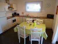 Die Einbauküche ist sehr gut ausgestattet, sie verfügt u. a. über eine Geschirrspülmaschine, Waschmaschine, einen Herd mit Backofen, einen Kühlschrank mit separatem Gefrierteil, eine Mikrowelle, Kaffeemaschine, Toaster, Wasserkocher, Stabmixer, Eierkocher sowie einen reichhaltigen Bestand an Geschirr, Gläsern und Besteck. Bügelbrett und Bügeleisen sind vorhanden.