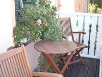 Die gepflasterte Terrasse - mit Grillmöglichkeit - neben der Villa, sowie der Kinderspielplatz befinden auf der Sonnenseite zum nahen Kurpark. Dieser steht unseren Gästen jederzeit zur Verfügung.