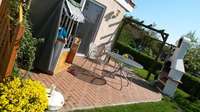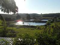 Eigener Gartenbereich mit sep. Eingang, Spielplatz, Zugang zum gesamten Außengelände ca. 20000 qm, die Fischteiche befinden sich in Ruf- und Sichtweite zur FeWo, Terasse mit Gartenkamin, Strandkorb und Sitzmöglichkeiten.
