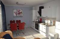 Küche vollständig eingerichtet (E-Herd, Kühlschrank,