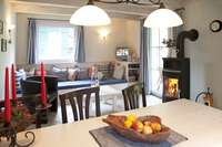 Im Erdgeschoss befindet sich die Landhausküche mit allem Komfort und Vollausstattung. Angefangen vom Toaster über Kaffeemaschine, Elektroherd und Backofen, Kühlschrank mit Gefrierfach, Geschirrspüler, Gläsern, Besteck finden Sie alles was Sie zum kochen benötigen.