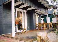 Unser Ferienhaus befinden sich in einer neu erbauten Ferienhaus-Anlage mit Häusern im skandinavischen Stil. Bis zum feinsandigen Ostseestrand sind es nur ein paar Schritte.