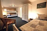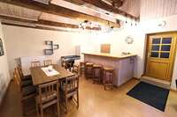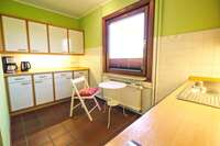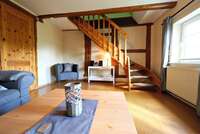 Die Wohnung "Gartenblick" liegt im Nachbarhaus unseres Bauernhauses, direkt auf unserem Hof. Sie ist 80 m² groß und verfügt über zwei Etagen. In der unteren Etage befinden sich das Bad mit Dusche und WC, eine Küche und das Wohnzimmer mit Essbereich. In der oberen Etage sind ein Kinderzimmer (ein Etagenbett und zwei Einzelbetten), das Elternschlafzimmer mit einem herrlichen Fernblick und ein weiteres kleines WC mit Waschtisch.