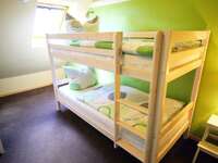 Es hat eine Wohnfläche von 70 qm und bietet ihnen einen 300 qm großen Garten (mit Terrasse, Gartenmöbeln und Grill) zur alleinigen Nutzung. Im Erdgeschoss befinden sich die Küche, das Esszimmer, das Wohnzimmer und das Badezimmer mit Dusche. Im Obergeschoss befinden sich ein Schlafzimmer mit Doppelbett und ein weiteres Schlafzimmer mit Etagenbett und einem Einzelbett.
