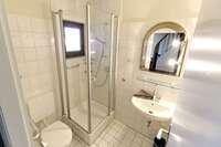 Die Ferienwohnung "Schafstall" ist 50 qm groß und befindet sich im Erdgeschoss. Sie ist mit einer geräumigen Wohnküche inkl. Geschirrspüler, einem Elternschlafzimmer, einem Kinderzimmer (ein Etagenbett u. ein Einzelbett) und Dusche mit WC ausgestattet. Die Terrasse ist direkt vor der Wohnung.