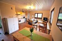 Die Ferienwohnung "Hühnerstall" befindet sich im 1. Stock unseres Bauernhauses. Die Wohnung ist 60 qm groß. Sie ist mit einer Einbauküche inklusive Geschirrspüler, einer Essecke und Dusche mit WC ausgestattet. Des Weiteren besteht sie aus einem Elternschlafzimmer, einem Wohnzimmer und einem Kinderzimmer mit drei Betten (ein Etagenbett und ein Einzelbett).